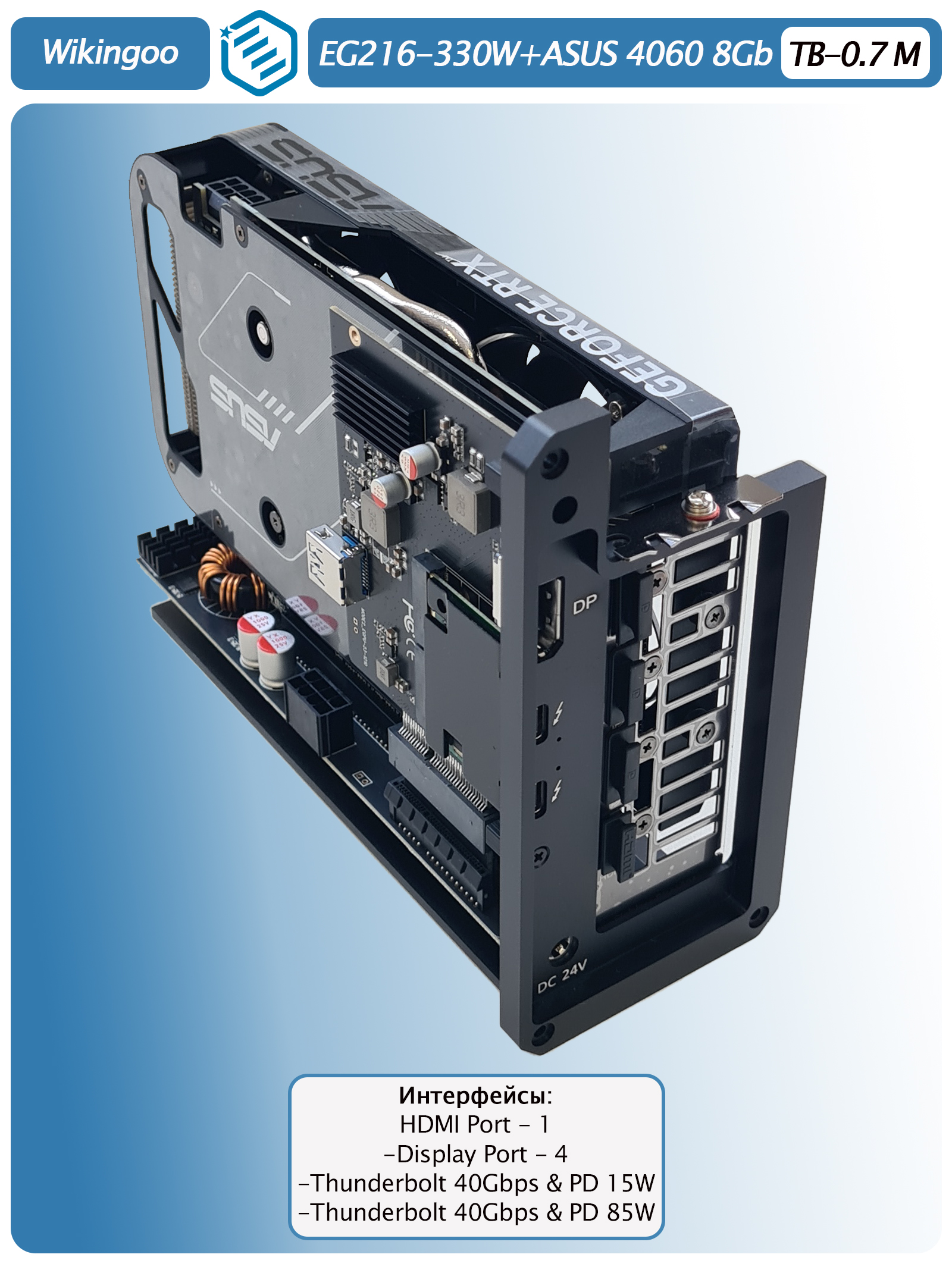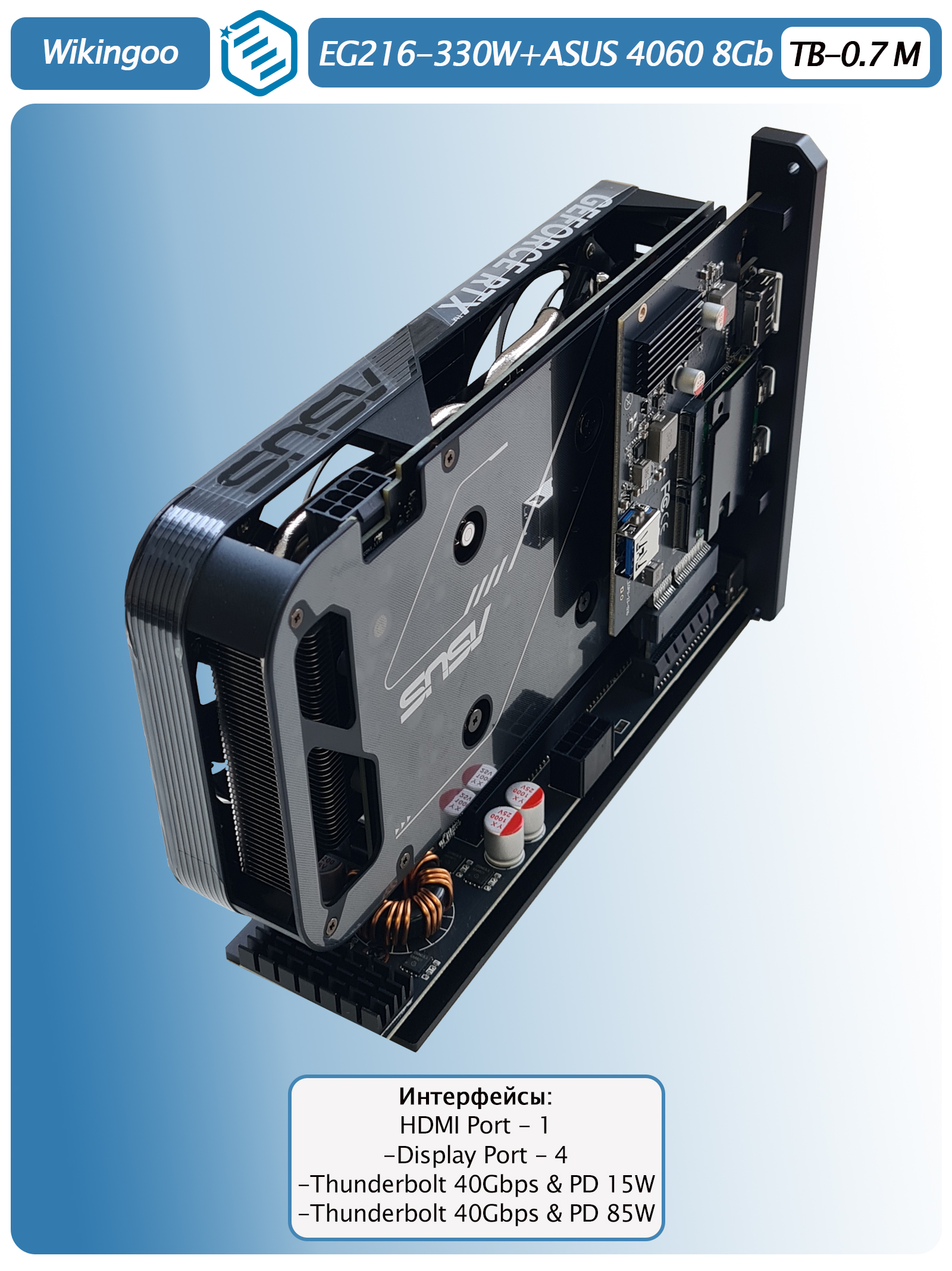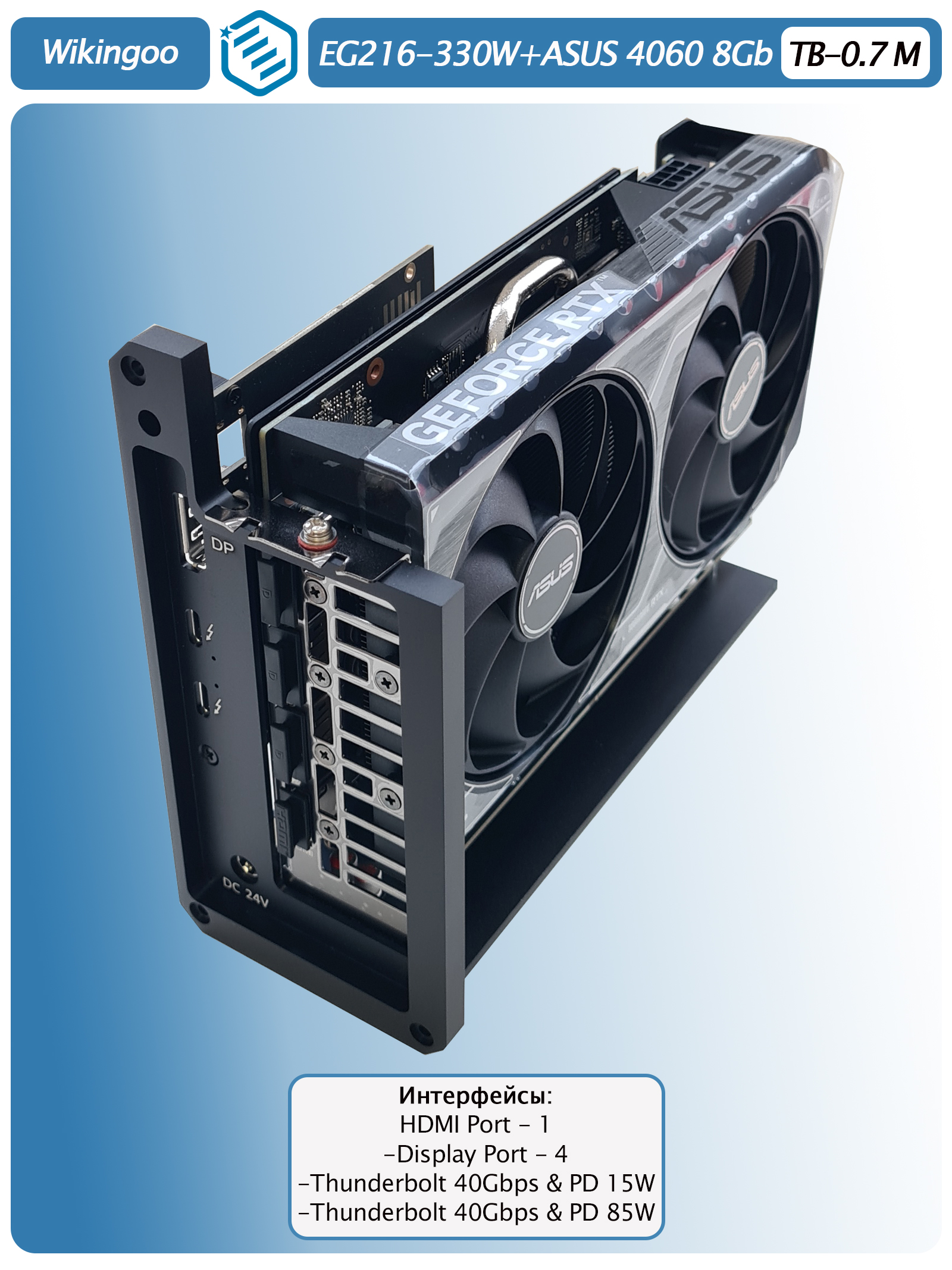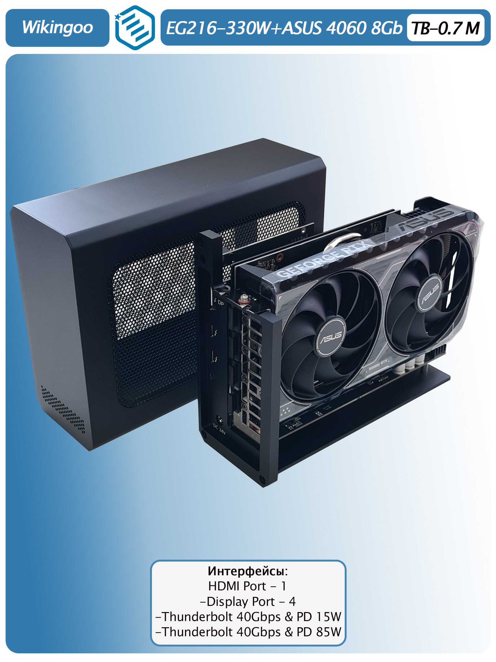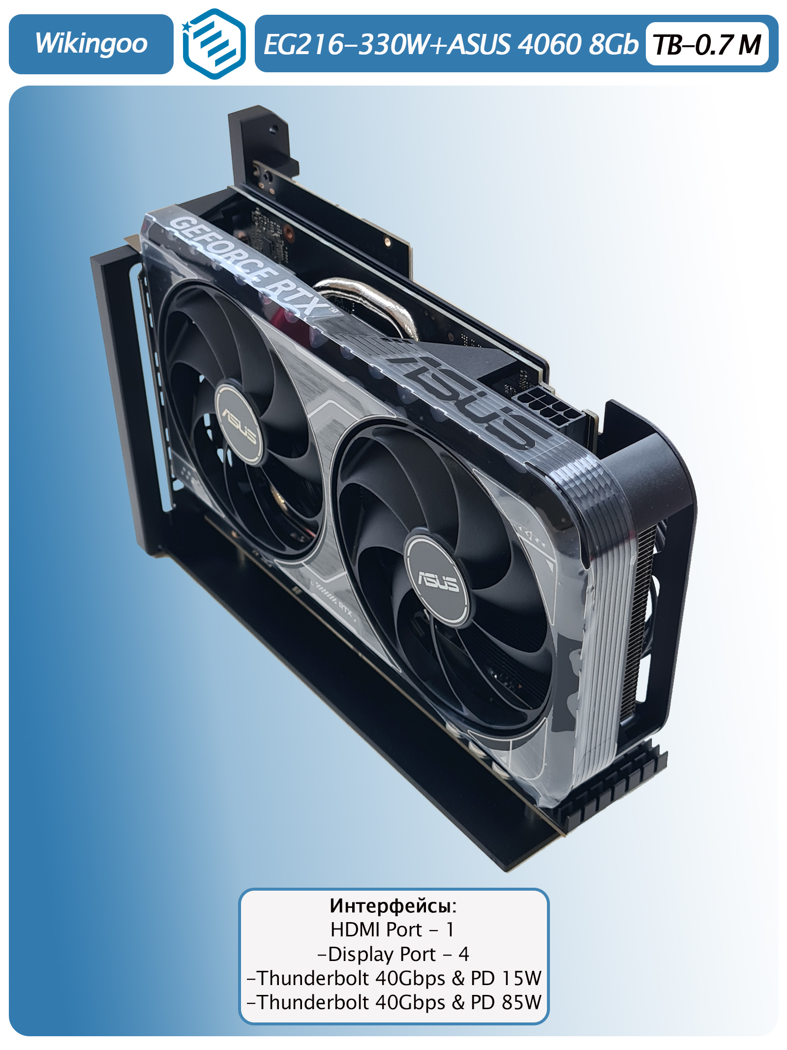 Внешняя видеокарта Wikingoo ASUS RTX 4060 8Gb. Thunderbolt 3/4. - это мощное и надежное решение для тех, кто хочет улучшить производительность своего компьютера.